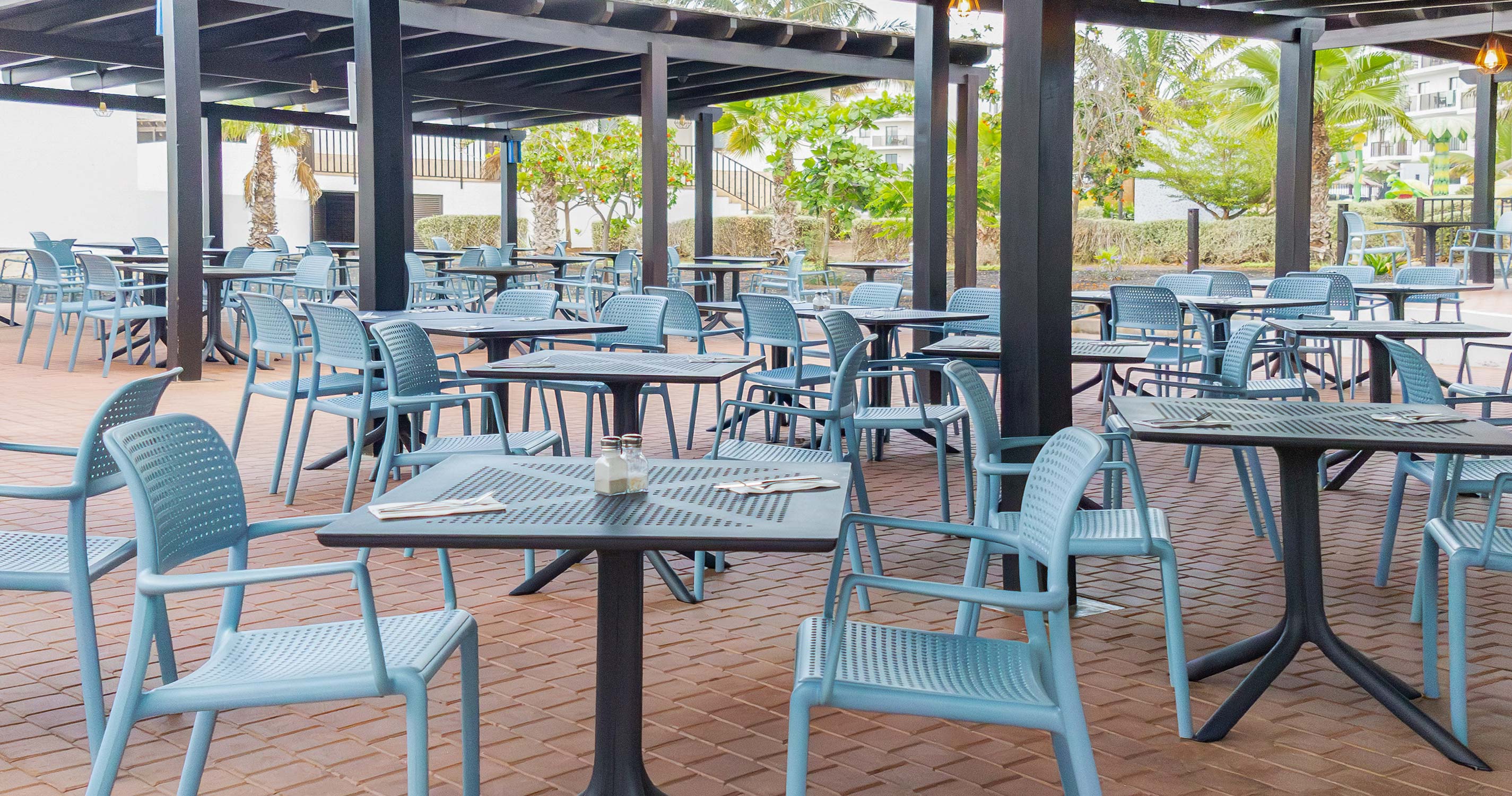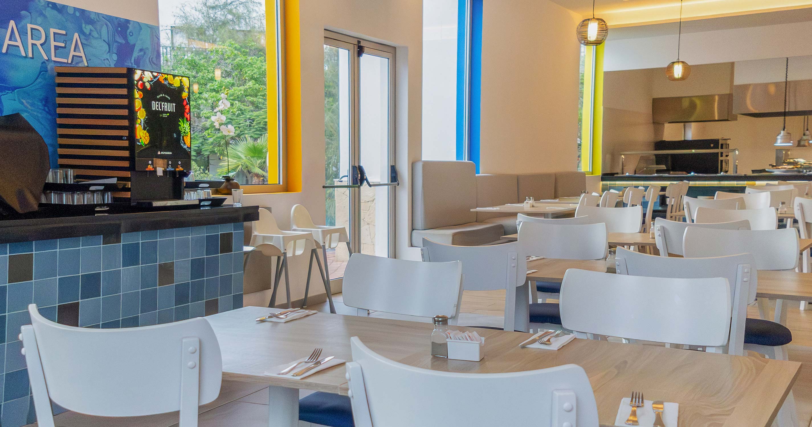 Klienti mohou využívat zdarma nový aquapark "Splash Water World" a dětský bazén se skluzavkami, který se nachází mezi hotelem Riu Palace Boa Vista a hotelem Riu Karamboa (otevřeno 6x týdně; některé části pouze pro osoby na 120 cm).Stravování