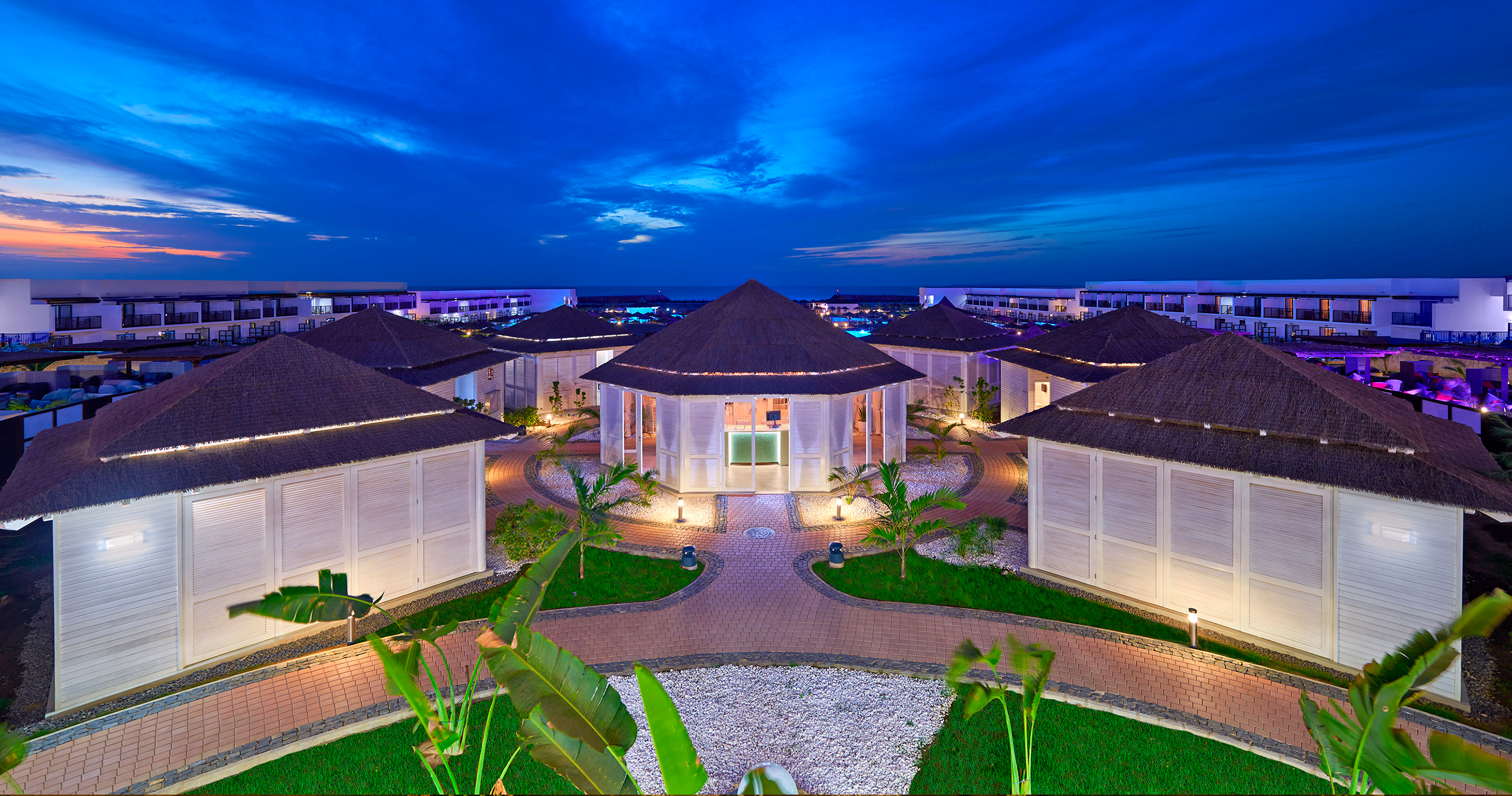 Hotel patří mezi rozsáhlé resorty, vzdálenost na pláž od recepce je cca 600m.