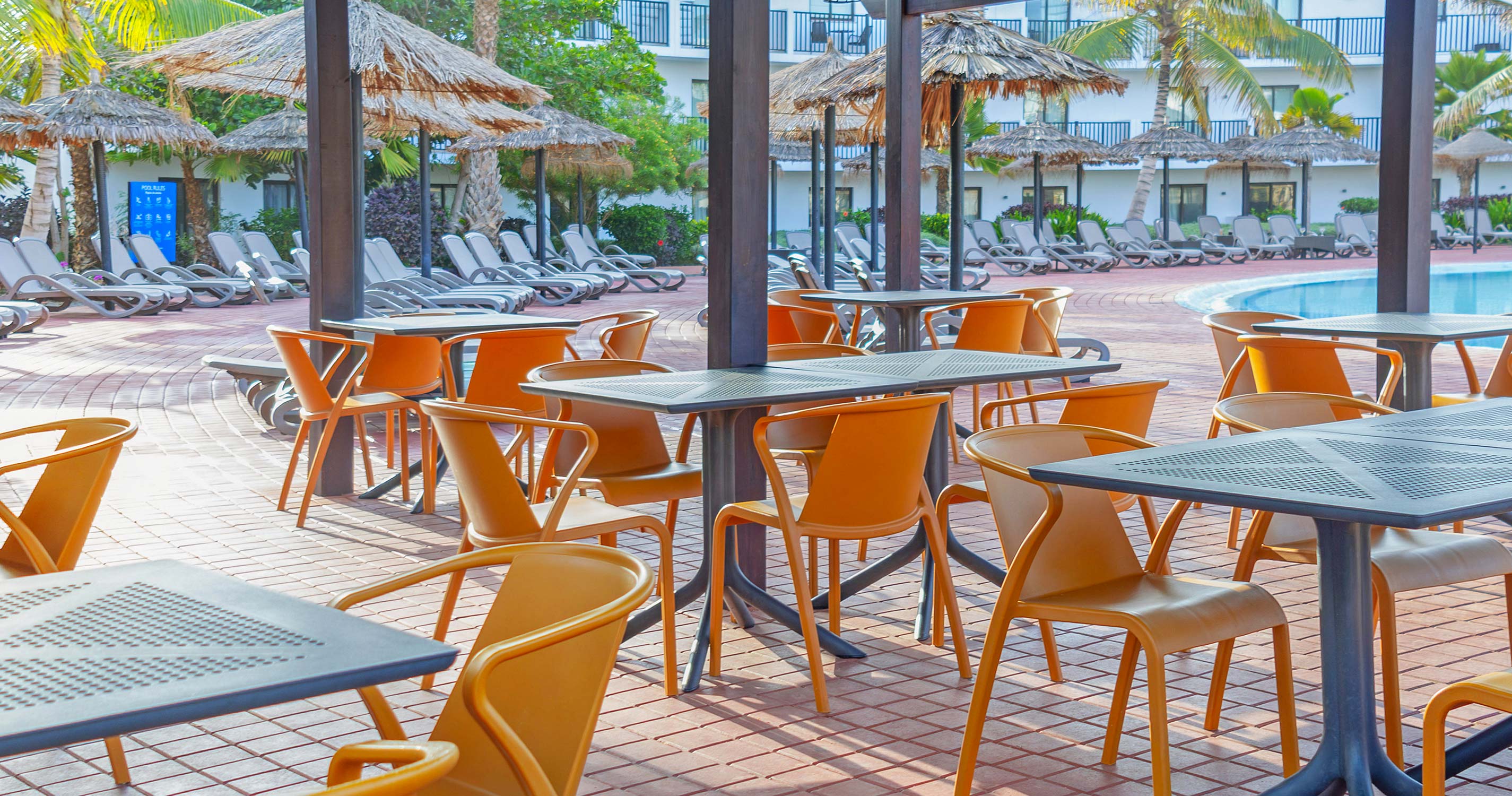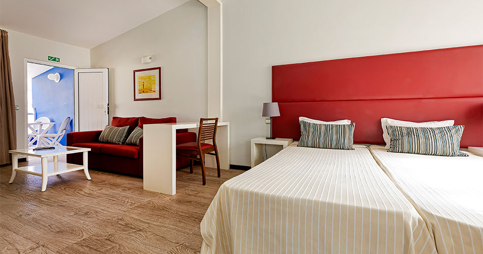- Dvoulůžkový pokoj Swim-up: viz dvoulůžkový pokoj, terasa s lehátky a přímým vstupem do bazénu, situované v zahradních vilkách, osoby pouze od 18 let.