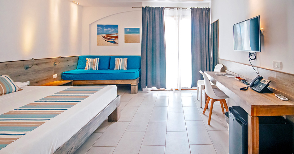 - pokoj s výhledem na moře: velikost pokoje cca 29 m2 jinak stejný jako standardní pokoj