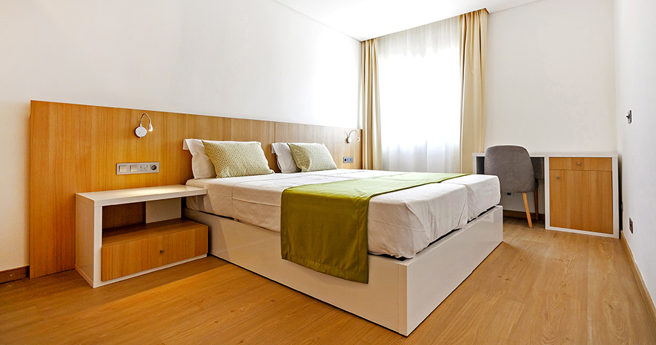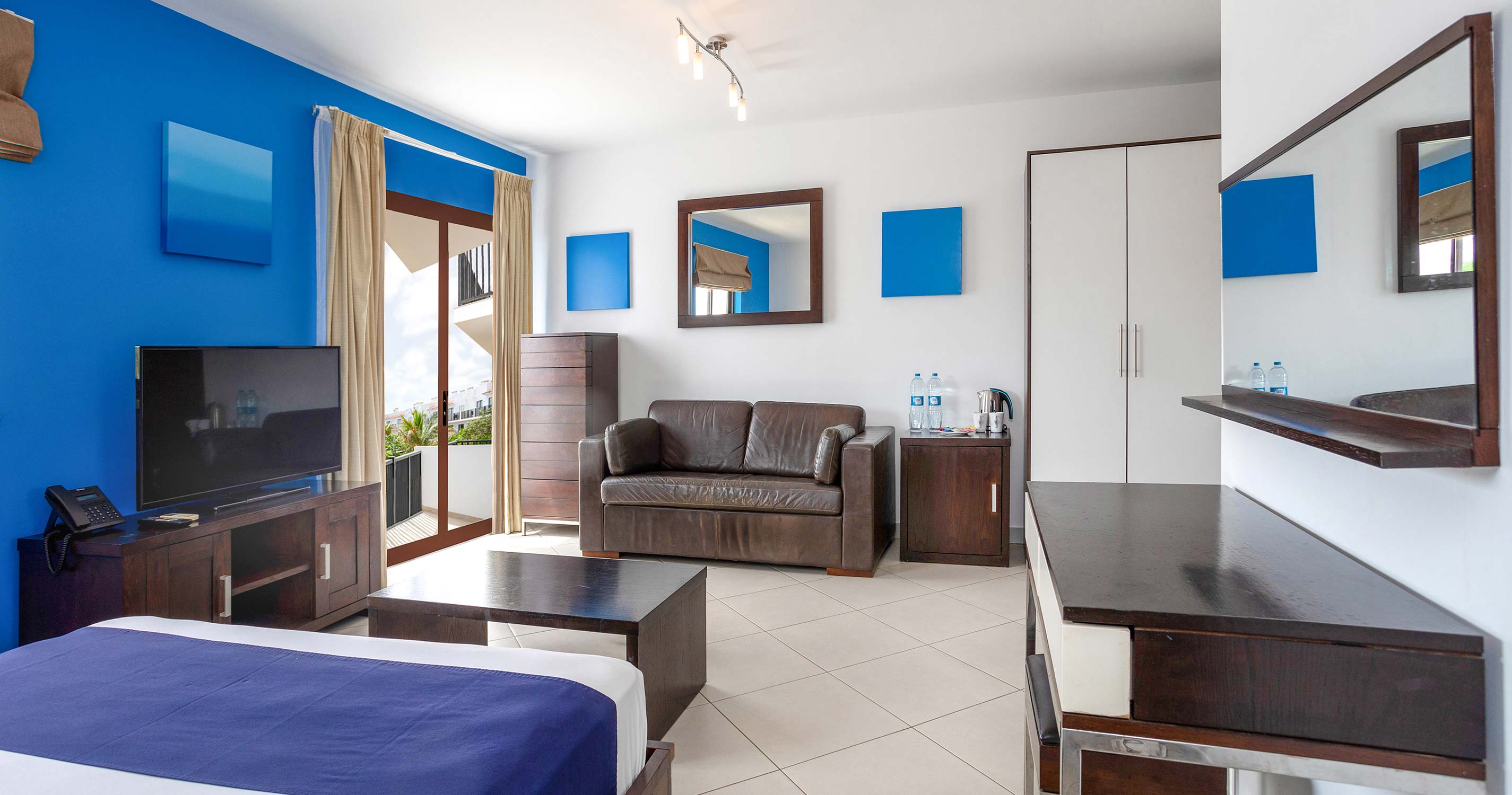 - Dvoulůžkový pokoj: koupelna/WC (vysoušeč vlasů, župany), sofa, klimatizace, stropní ventilátor, telefon, TV/sat., minibar, automat na likéry, varná konvice, trezor, žehlička a žehlící prkno, balkon nebo terasa.