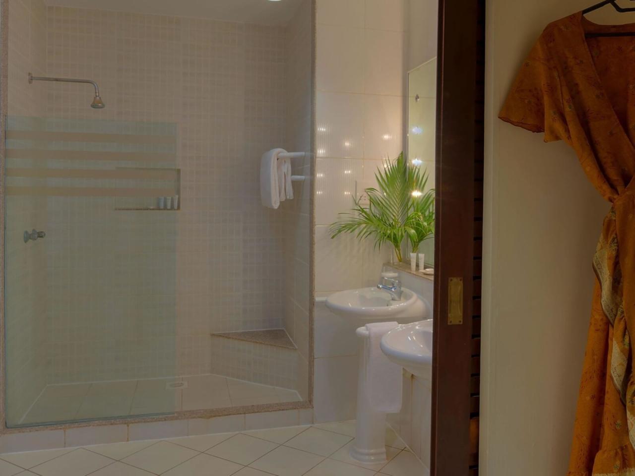 Dvoulůžkový pokoj comfort: koupelna/WC, fén na vlasy, klimatizace, TV/sat., moskytiéra, minibar, trezor (zdarma), výhled do zahrady, set na přípravu kávy a čaje, balkon nebo terasa, 30 m2.