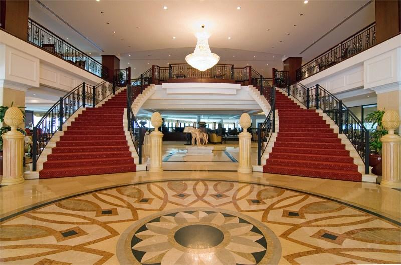 | Uvítá Vás prostorná elegantní vstupní hala s recepcí, lobby s barem a výtahy. Vnitřní prostory Vám nabídnou business centrum, salónky, společenskou místnost, dětskou hernu, bankomat, dále k Vaší relaxaci lze využít hotelové Spa s vnitřním bazénem, saunou, vířivkou a nespočtem druhů masáží a kosmetických či revitalizačních procedur. Dobře vybavené fitness centrum je samozřejmostí. Stravování obstarává celkem 6 restaurací různého zaměření, k posezení u kávy lze využít několik vnitřních a venkovních barů a snack-barů. Venkovní areál nabízí dva velké bazény obklopené slunečními terasami s lehátky a slunečníky (zdarma). K pobavení je hostům k dispozici řada animačních programů pořádaných hotelem, je zde dětský miniklub, dětské venkovní hřiště, stolní tenis, kulečník, diskotéka, kasino i noční klub. Nedaleko od hotelu je středisko vodních sportů s řadou atrakcí. Golfové hřiště je 16 km daleko. Parkování pro hotelové hosty je za poplatek. |