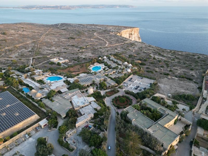 | Luxusní hotelové zařízení leží v severozápadní části Malty, nedaleko centra střediska Mellieha. Areál je posazen na malém útesu nad překrásnou písečnou pláží Golden Bay a díky své poloze skýtá nádherný výhled na moře. Díky místní dopravě se lze snadno dopravit do dalších okolních zajímavých míst, rovněž tak dojít (10 min chůze) do přístavu, odkud lze absolvovat plavbu trajektem na ostrov Gozo Comino. Mezinárodní letiště je vzdáleno 20 km. |