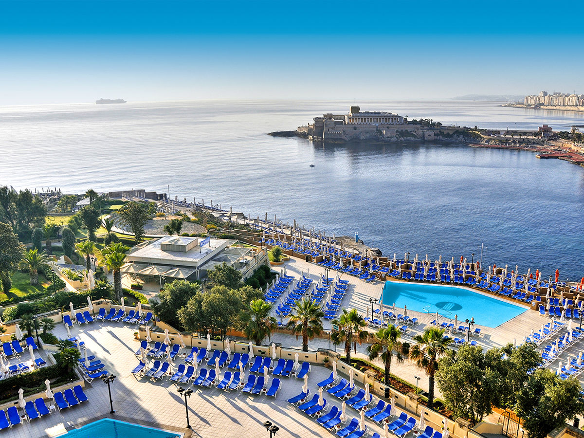 | 5* luxusní hotel, 250 pokojů a suite, několik restaurací a barů, vinárna, kavárna, vnitřní bazén, venkovní bazény, dětský bazén, konferenční místnosti, wellness centrum, sauna, fitness, kadeřnictví, vodní sporty, potápění, Wi-Fi internet. Denně zdarma autobusové spojení do Valletty, nákupního centra ve Sliemě a do Marsa Golf Club (18-ti jamkové golfové hřiště). |