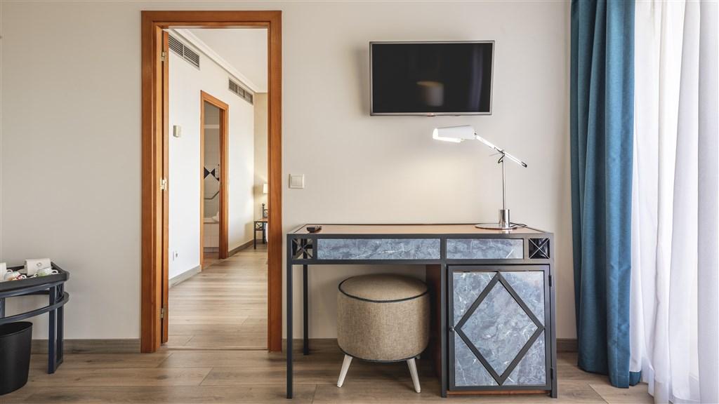 | Základní vybavení je stejné jako ve standardním pokoji, navíc má integrovaný kuchyňský kout (lednička, mikrovlnná trouba, kávovar, rychlovarná konvice). Balkon má výhled na moře. Maximální obsazenost - 3 dospělé osoby (včetně dětí do 2 let). |