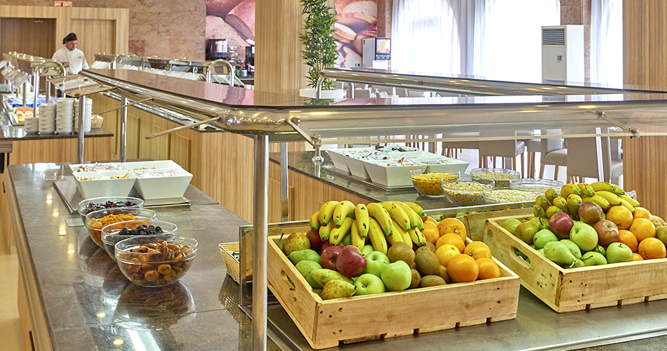 | Snídaně jsou formou švédských stolů v panoramatické restauraci s mezinárodní kuchyní. |