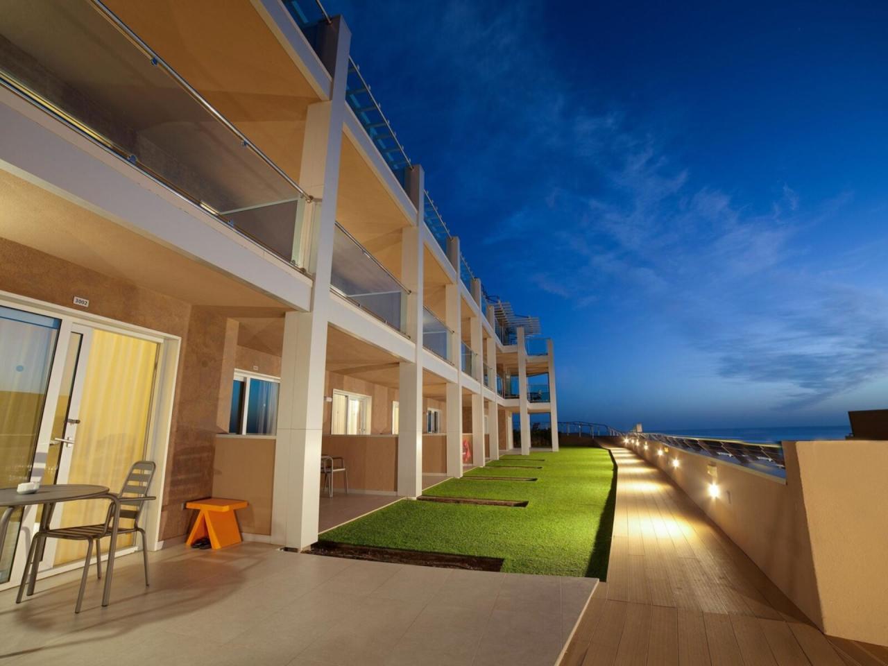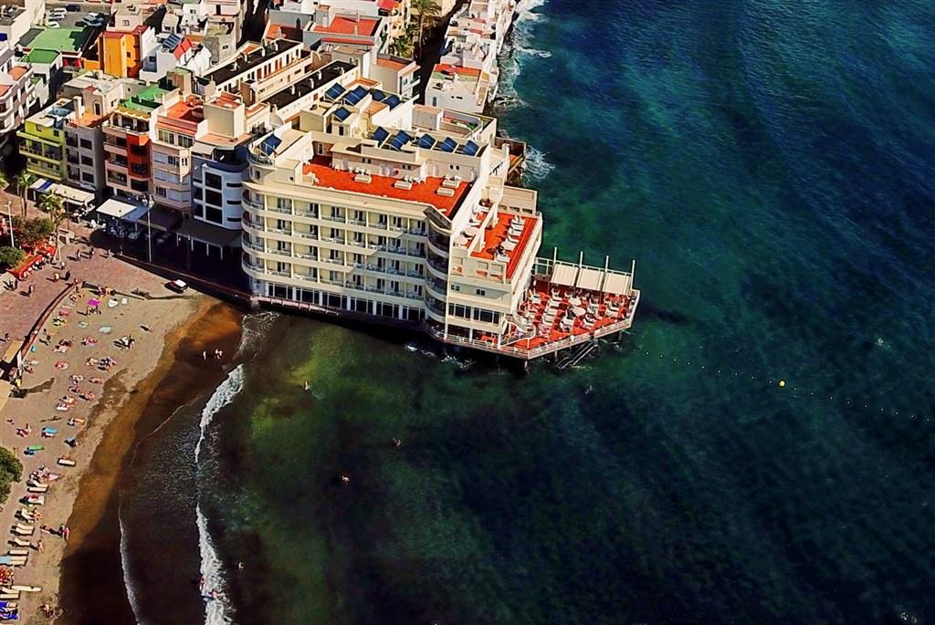 | Tento pětipatrový hotel na první pohled zaujme svou architekturou, připomíná loď zakotvenou přímo na pláži a "zakusující se" do vod Atlantiku. Hostům je k dispozici celkem 90 pokojů, vstupní hala s recepcí, výtahy, bezplatné Wi-Fi připojení k internetu ve společných prostorech, restaurace s výhledem na moře, služby prádelny, půjčovna aut. Na jedné ze 4 hotelových teras jsou lehátka, slunečníky a pro hosty přístup do moře. V hotelu není k dispozici bazén, jeho provoz zakazuje zákon o pobřeží. |