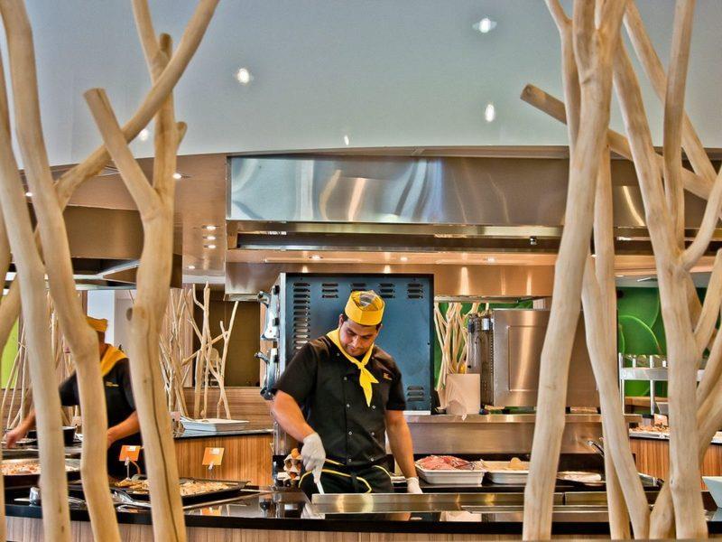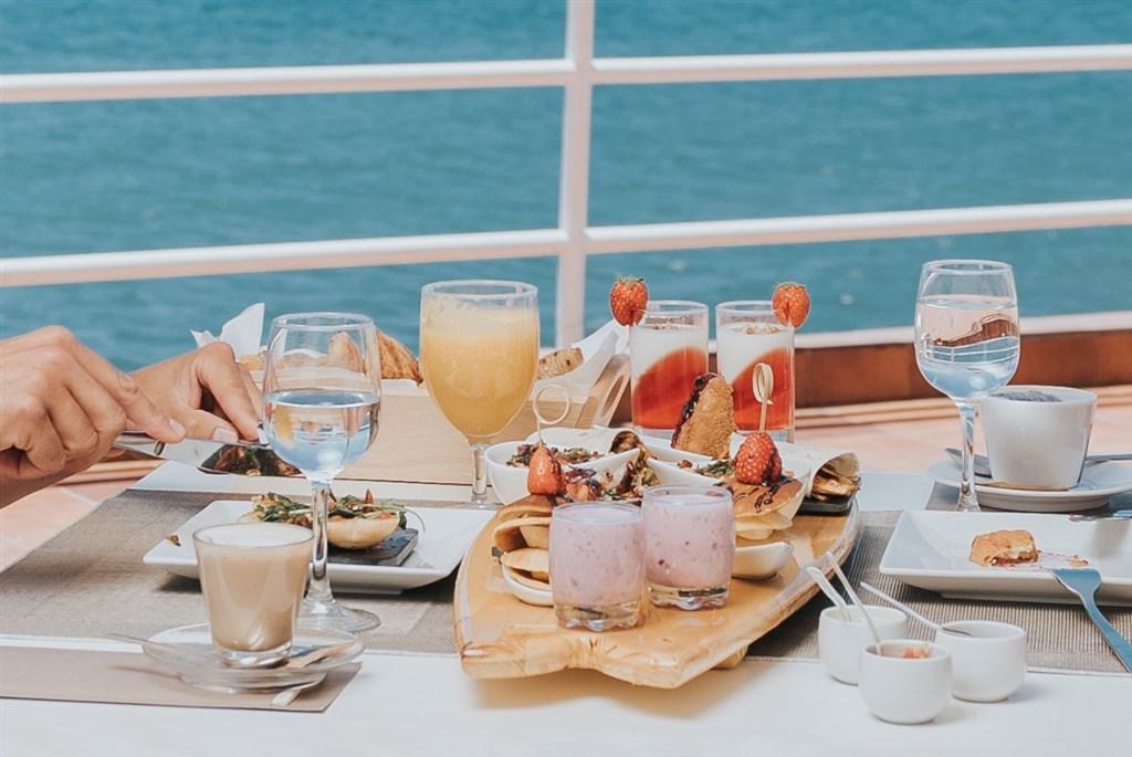 | Hlavní restaurace podává místní a mezinárodní kuchyni formou bufetu. Další možností je restauarace a la carte na terase s výhledem na moře, bar u bazénu a bar v lobby. |