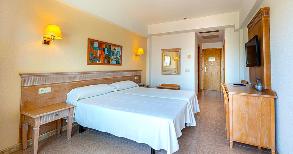 | 2-lůžkové pokoje bez možnosti dalších přistýlek (2 lůžka o rozměrech 1,05×2m nebo 2 Queen Size lůžka). Maximální obsaditelnost 3 dospělí nebo 2 dospělí + 2 děti do 12,99 let. Pokoje disponují individuální klimatizací, koupelnou s WC, vysoušečem vlasů, SAT/TV, telefonem, minibarem (za poplatek), trezorem a balkonem nebo terasou s výhledem na zahrady/moře. |