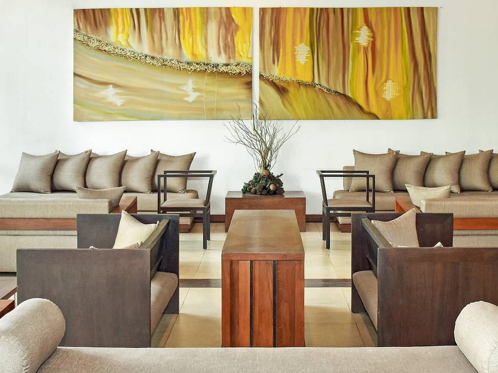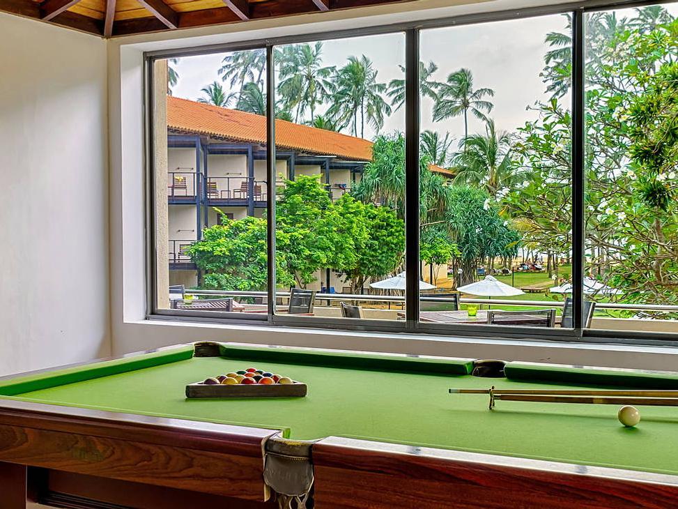 Recepce, hlavní restaurace Cafe Bem se srílanskou, asijskou a mezinárodní kuchyní, restaurace s mořskými plody a thajská restaurace, 3 bary: lobby (08:00-24:00) s nabídkou občerstvení a nápojů během dne, Inn Between (10:00-24:00) s živými vystoupeními a bar u bazénu (10:00-18:00). Dále: velký bazén nepravidelného tvaru s vířivkou a dětskou částí, lehátka k dispozici zdarma. Za poplatek: masáže a lázeňské procedury, pokojová služba. |